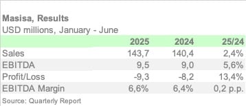 Total sales reached USD 143.7 million, up 2.4% from the previous year. The EBITDA margin improved slightly to 6.6%, compared to 6.4% in the first half of 2024.