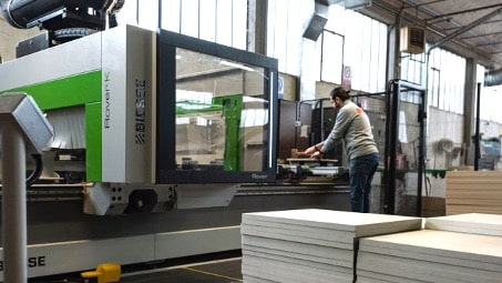 A key factor in Cecchini Italia’s evolution is its long-standing partnership with Biesse. Cecchini highlights the role of Biesse’s technologies and continuous support, which have enabled the company to manage efficient customized production without compromising quality. The production department now relies on four interconnected Biesse CNC machines that handle the complete cycle—from raw panel processing to finished semi-processed components—fully aligned with Industry 4.0 standards.
