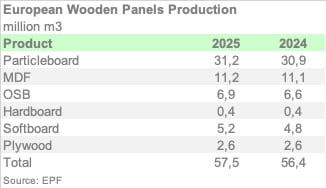 GERMANY – During the recent Interzum trade fair, the European Panel Federation (EPF) shared preliminary figures for 2024 and its outlook for 2025, highlighting a modest production increase of 1.9% compared to the previous year.