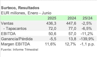 Surteco mantiene su proyección de ventas anuales entre EUR 850 y 900 millones, con un EBITDA ajustado entre EUR 85 y 105 millones, aunque advierte que los resultados se ubicarían en el extremo inferior del rango debido al entorno económico desafiante.